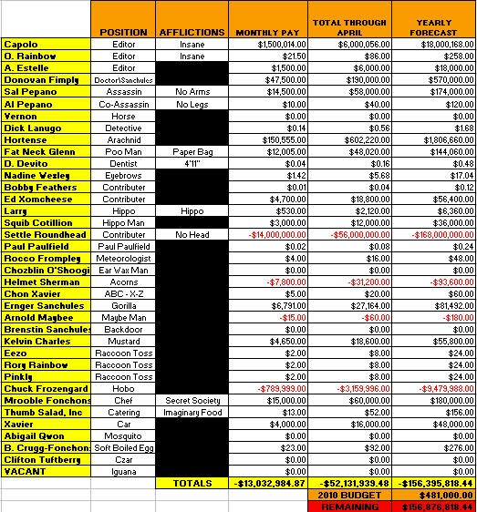 Oscar Q. Rainbow is back. After being laid off two days ago, Rainbow showed up at HQ this morning and assassinated Staff Tyrant Ned Flumpton. 4 seconds after, the commonly insane Rainbow appointed himself "Staff Prime Minister."